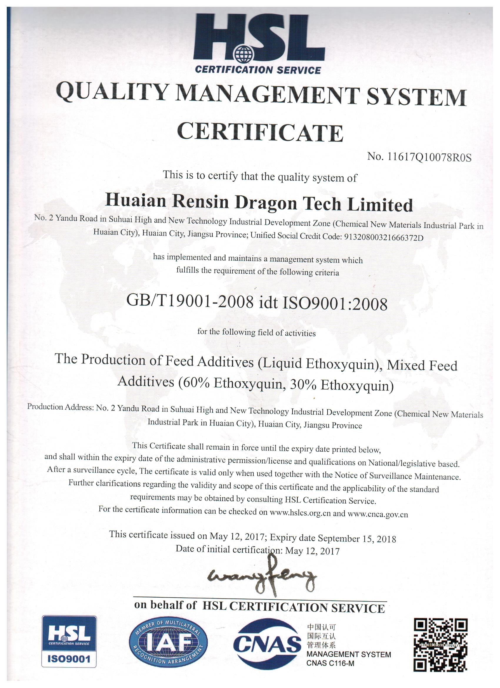 潤龍科技乙氧基喹啉自投產(chǎn)以來,生產(chǎn)穩(wěn)妥、安全、質(zhì)量可靠,生產(chǎn)理念堅持走全球一體化道路,所投產(chǎn)的產(chǎn)品全部基于國際質(zhì)量水平的技術(shù)基礎(chǔ)之上實施,主營產(chǎn)品“乙氧基喹啉”已家喻戶曉,暢銷亞洲、歐洲、南美洲、北美洲、大洋洲等30多個國家和地區(qū),年出口占比高達80%以上。同時,與國內(nèi)多家百強企業(yè)形成強力的合作關(guān)系。